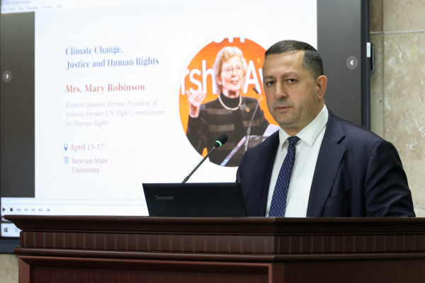ԵՊՀ ռեկտոր Հովհաննես Հովհաննիսյանը նշեց՝ գիտաժողովը կարևոր հարթակ է, որը մեկտեղում է տարբեր ոլորտների ներկայացուցիչներին՝ քննարկելու մեր ժամանակների ամենահրատապ մարտահրավերներից մեկը՝ կլիմայի փոփոխությունը։ Ըստ նրա՝ այսօր կլիմայի փոփոխությունն այլևս չի դիտարկվում միայն որպես բնապահպանական խնդիր, այլ դարձել է գլոբալ քաղաքական, սոցիալական, տնտեսական և հումանիտար օրակարգերի առանցքային բաղադրիչ։ Ռեկտորի խոսքով՝ դրա հետևանքները տարբեր հասարակությունների և սոցիալական խմբերի վրա ունեն անհամաչափ ազդեցություն, հատկապես՝ խոցելի խմբերի, երեխաների, տեղահանված անձանց և աղքատ համայնքների դեպքում, ինչի պատճառով կլիմայական արդարությունը ձեռք է բերում գործնական նշանակություն։