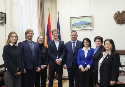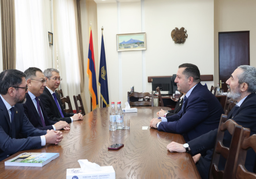 Ուրվագծվում են հայ-ղազախական գիտակրթական համագործակցության նոր հեռանկարներ․ հանդիպում ԵՊՀ-ում ԵՊՀ ռեկտոր Հովհաննես Հովհաննիսյանն այսօր հյուրընկալեց Հայաստանի Հանրապետությունում Ղազախստանի արտակարգ և լիազոր դեսպան Բոլատ Իմանբաևին, Ալ-Ֆարաբիի անվան Ղազախստանի ազգային համալսարանի ռեկտոր Ժանսեիտ Կանսեյտուլի Տույմեբաևին և Ղազախստանի Հանրապետության դեսպանատան խորհրդական Ասկար Երկինովին։ Հանդիպման նպատակն էր ուղենշել երկու համալսարանների միջև գիտակրթական կապերի ամրապնդման և նոր գործակցության հեռանկարները։