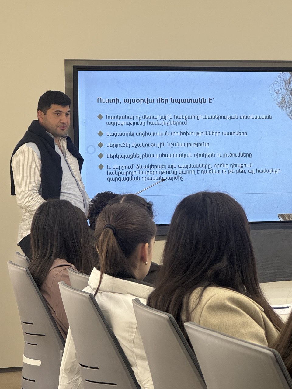 В ходе встречи, организованной Союзом производителей камня для студентов факультета географии и геологии ЕГУ, был представлен доклад на тему «Социально-экономические и экологические воздействия производства неметаллических полезных ископаемых».
