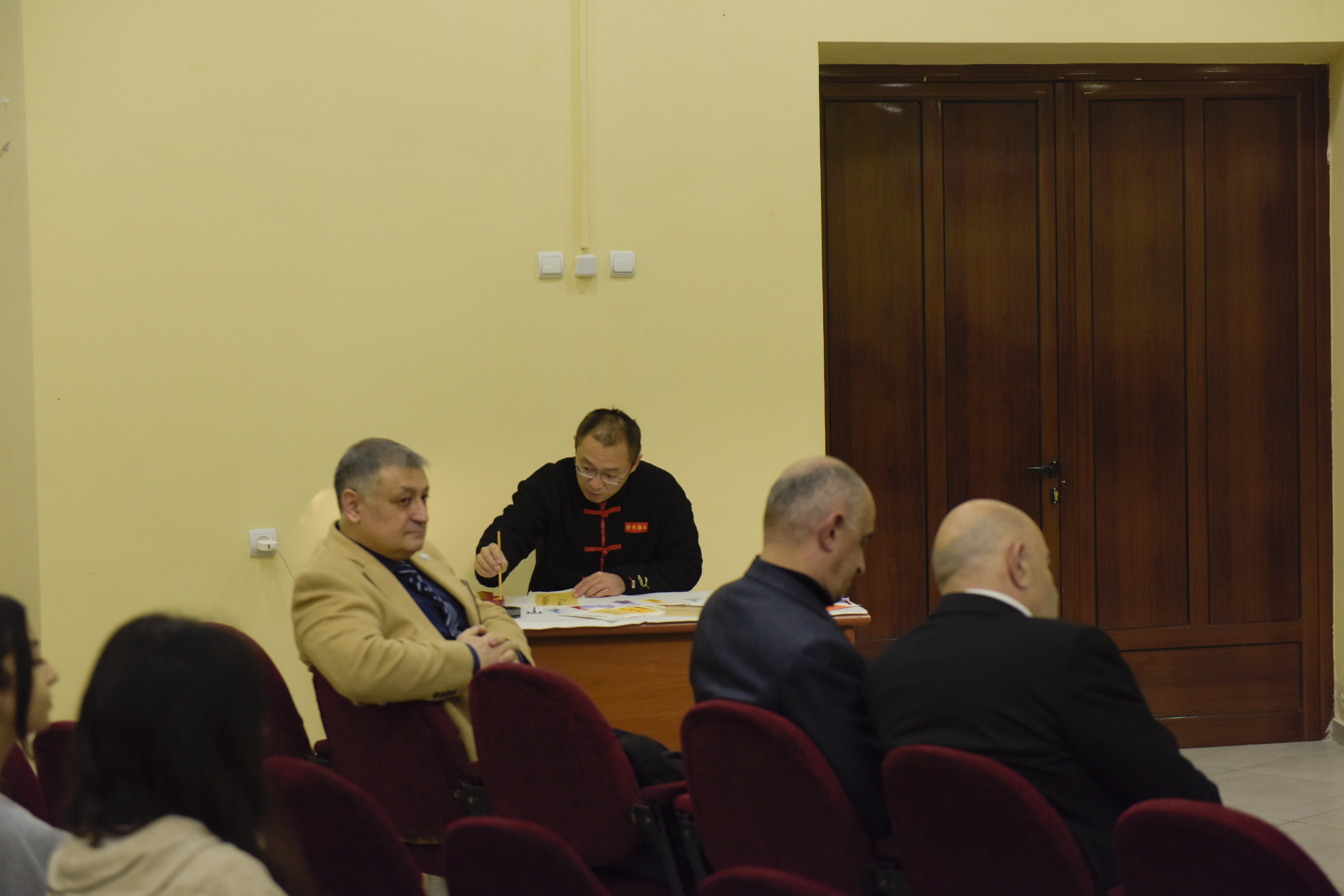 Мастер и теоретик каллиграфии Чень Цяо познакомил участников мероприятия с историей и основными закономерностями китайской каллиграфии, представил общие черты между армянским алфавитом, трчнагиром (заглавными буквами армянского алфавита, стилизованными под рисунки птиц) и китайской каллиграфией. Участники получили сувениры с орнаментами китайской каллиграфии.