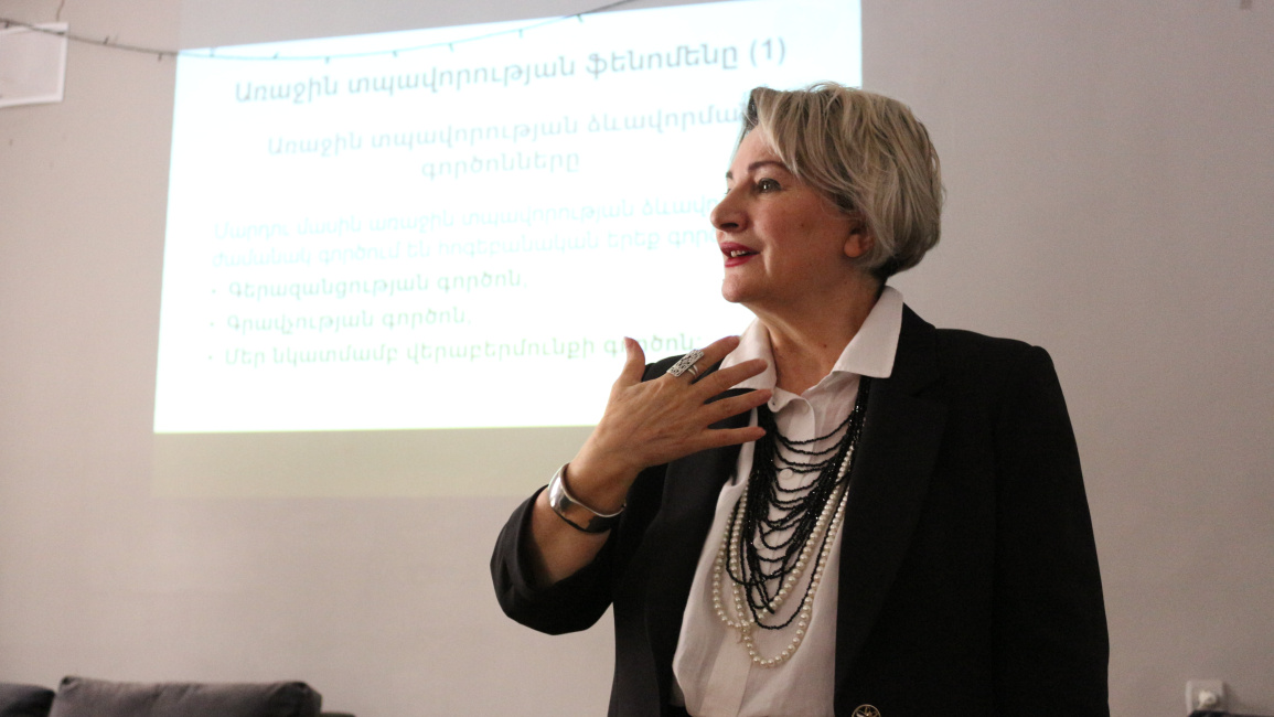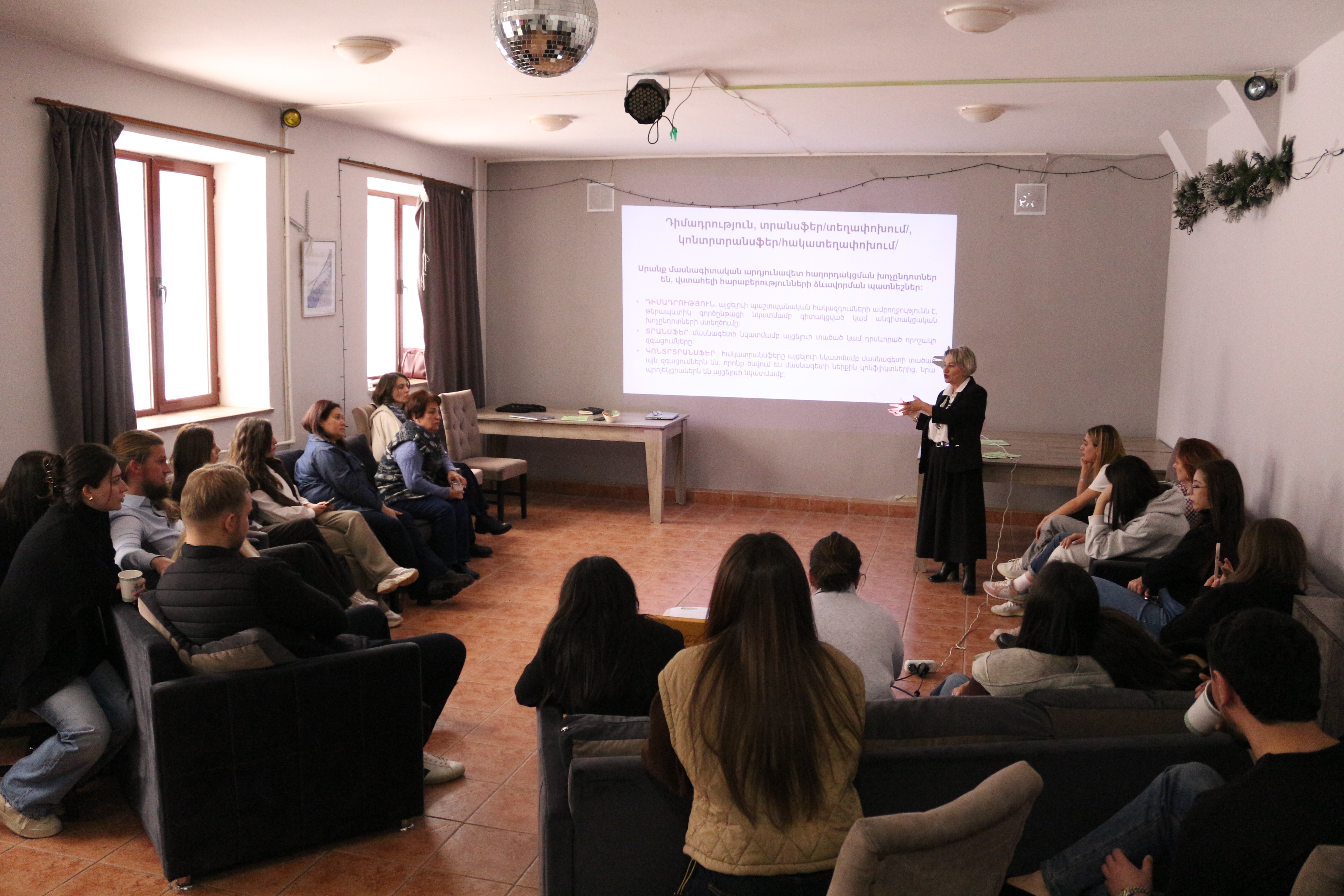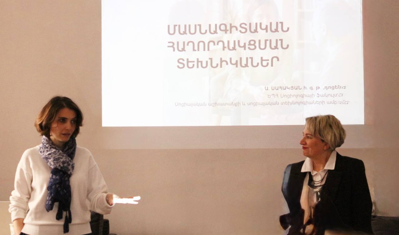 А. Саакян представила студентам фундаментальные принципы и техники для выстраивания доверительных отношений с бенефициаром, после чего были распределены роли и заданы упражнения: были выбраны студенты, занимающие роль бенефициара, и социальные работники, устанавливающие с ними первичный контакт.