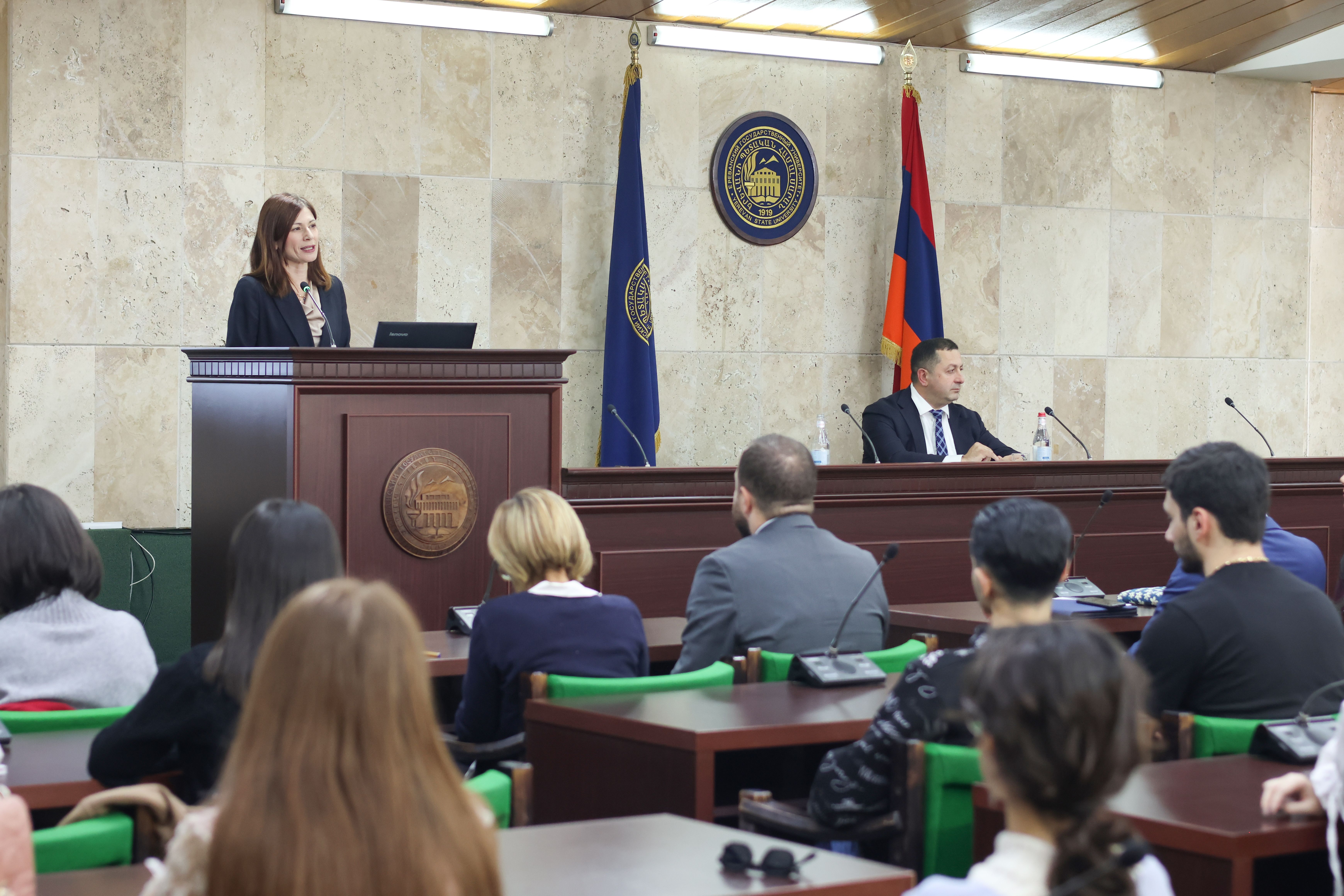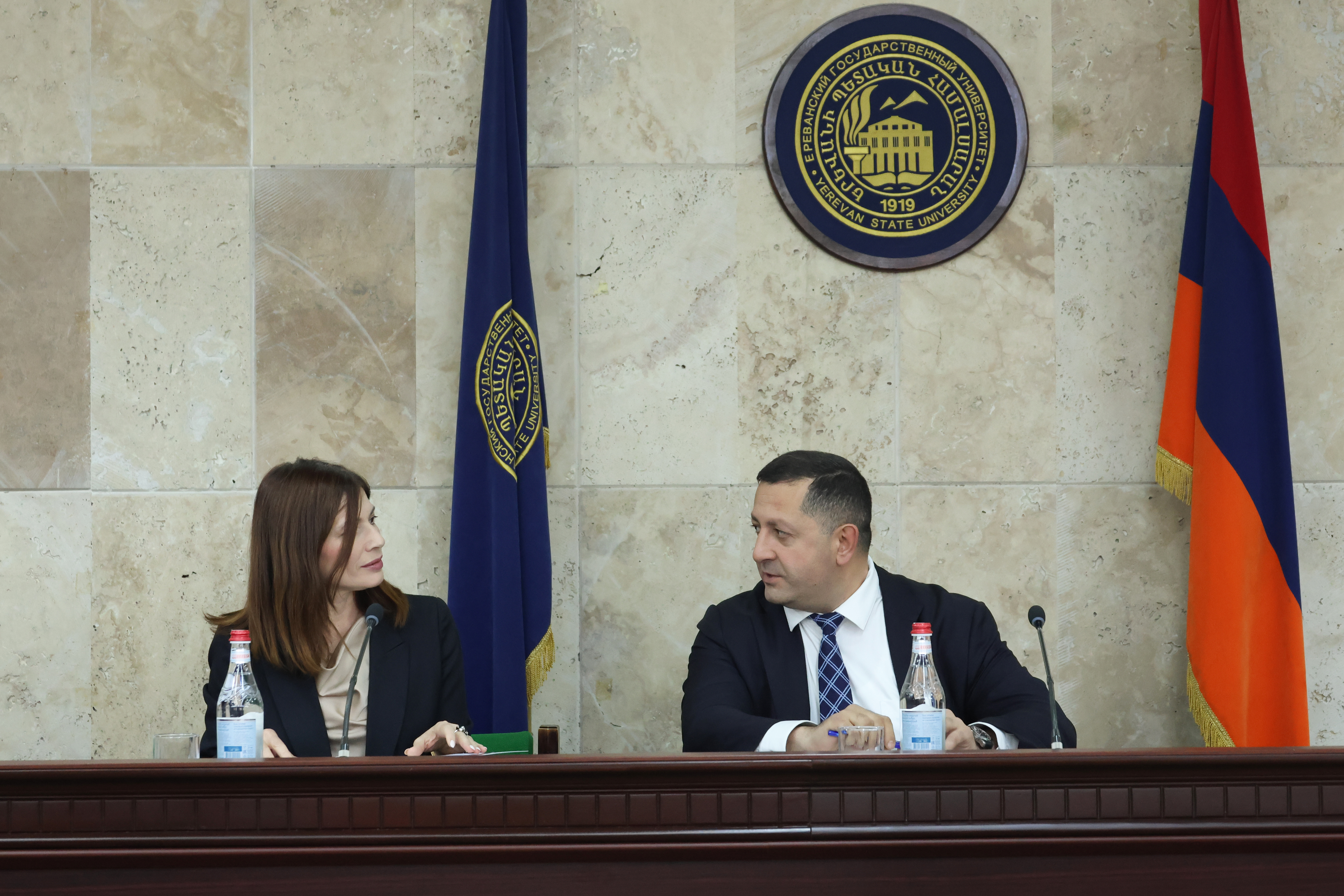 Ректор ЕГУ Оганнес Оганнисян принял делегацию во главе со специальным представителем Генерального секретаря НАТО по вопросам женщин, мира и безопасности Ирене Феллин.