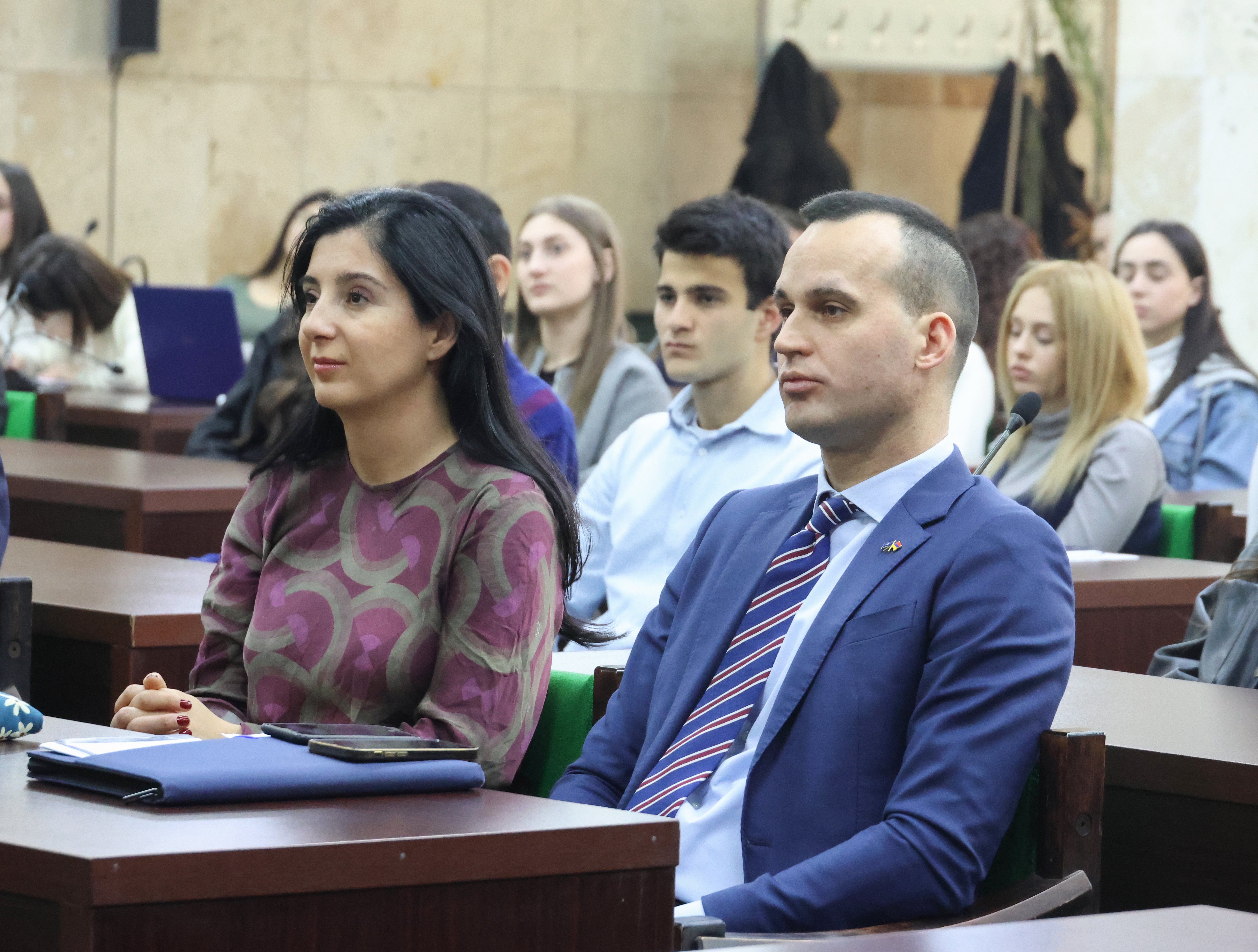 На выступлении в зале заседаний Учёного совета присутствовали и студенты ЕГУ, которые имели возможность задать свои вопросы Специальному представителю Генерального секретаря НАТО Ирене Феллин.