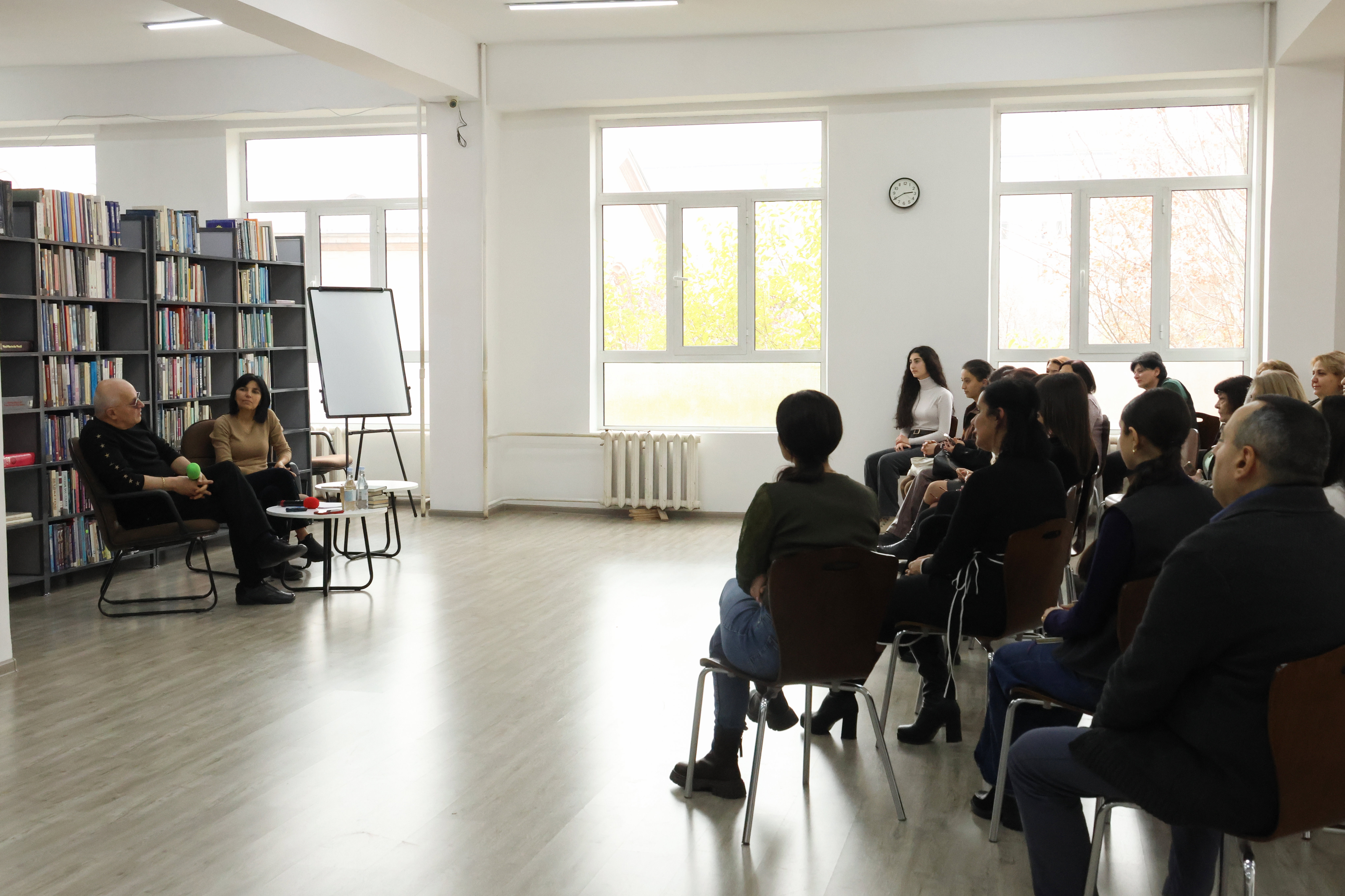 В библиотеке имени Саргиса и Мари Измирлянов ЕГУ состоялась литературная встреча с прозаиком Марком Ареном (Кареном Маргаряном). В ходе встречи автор поделился своими размышлениями о своём творчестве, личном опыте и интересных моментах литературной жизни.