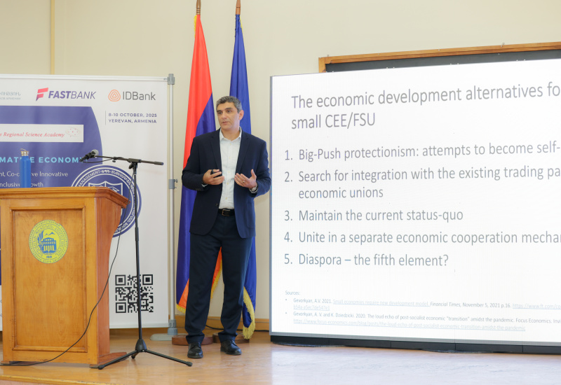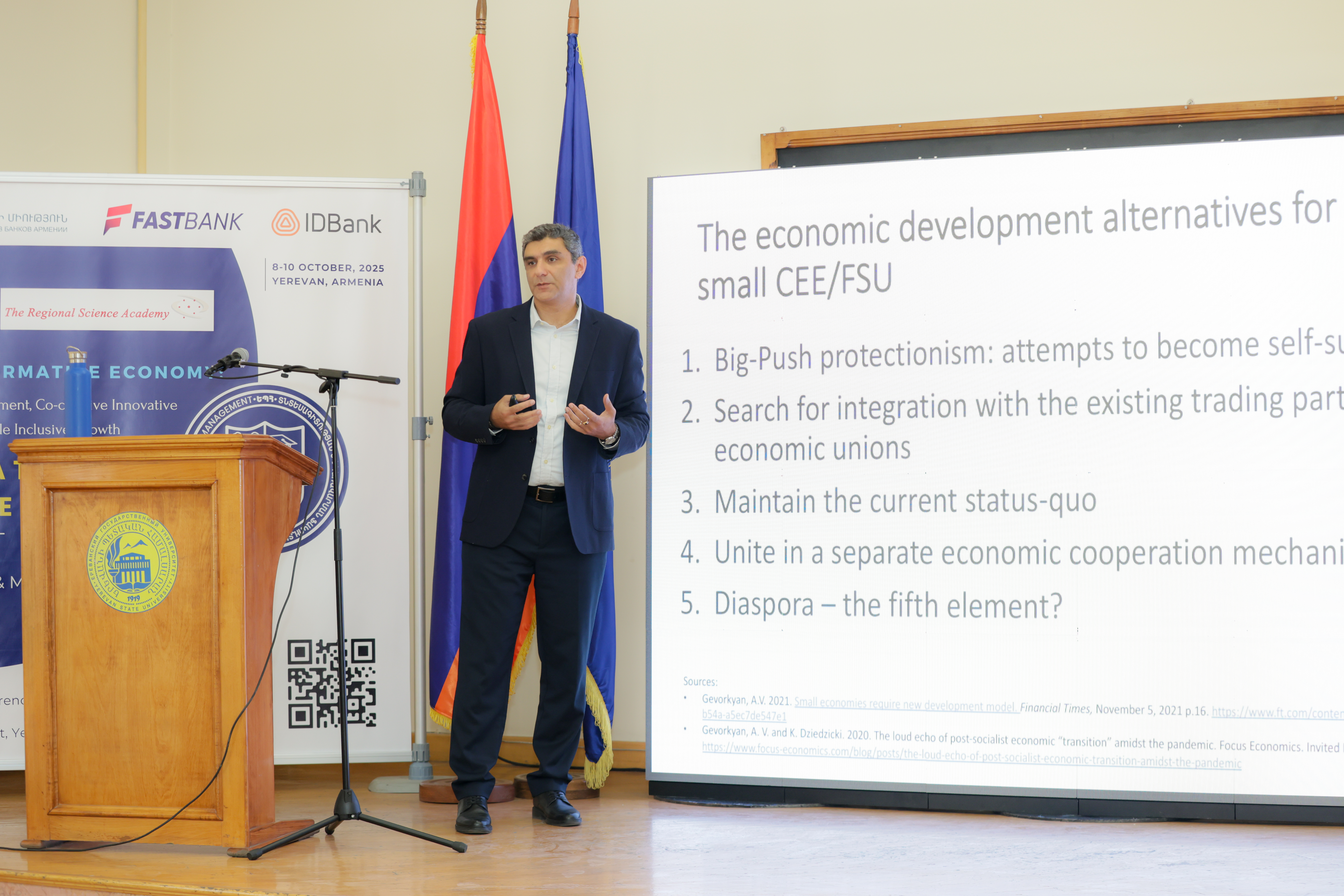 Գիտաժողովի ընթացքում թեմատիկ յոթ բաժանմունքներում անցանց և առցանց ձևաչափով ներկայացվեցին ավելի քան 75 զեկուցումներ: Եռօրյա գիտական միջոցառման շրջանակում զեկուցումներով հանդես եկան նաև ՀՀ պետական կառավարման, ֆինանսաբանկային ոլորտի, ինչպես նաև միջազգային առաջատար կազմակերպությունների ներկայացուցիչներ, այդ թվում՝ ՀՀ կենտրոնական բանկի, ՀՀ էկոնոմիկայի նախարարության, Արժույթի միջազգային հիմնադրամի և Համաշխարհային բանկի փորձագետներ: Գլխավոր խոսնակների թվում էին երկու Նոբելյան մրցանակակիրներ՝ ԱՄՆ Փրինսթոնի համալսարանի պրոֆեսոր Փոլ Կրուգմանը (2008 թ.) և Մասաչուսեթսի տեխնոլոգիական ինստիտուտի պրոֆեսոր Տարոն Աճեմօղլուն (2024 թ.), ինչպես նաև Էրազմ Ռոտերդամցու անվան համալսարանի պրոֆեսոր, Տարածաշրջանային գիտության ակադեմիայի (TRSA) փոխնախագահ, համաշխարհային ճանաչում ունեցող լավագույն 30 տնտեսագետներից Պիտեր Նայկամպը: