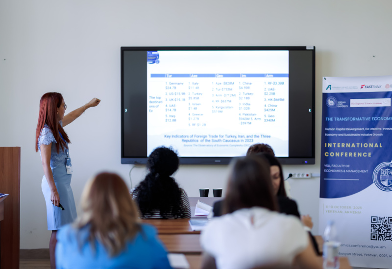 Ս.թ. հոկտեմբերի 8-10 ԵՊՀ տնտեսագիտության և կառավարման ֆակուլտետում անցկացվեց «Փոխակերպվող տնտեսություն. մարդկային կապիտալի զարգացում, ստեղծարար նորարարական տնտեսություն, կայուն ներառական աճ» խորագրով միջազգային 2-րդ գիտաժողովը: