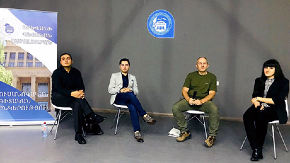Для участников 6-й международной конференции СНО ЕГУ 30-го сентября состоялся культурный вечер под названием «Маленькая страна, большие мечты. Армения», на которой присутствовали специальные гости известный путешественник, блогер Александр Лапшин и доцент кафедры политических институтов и процессов ЕГУ Менуа Согомонян.