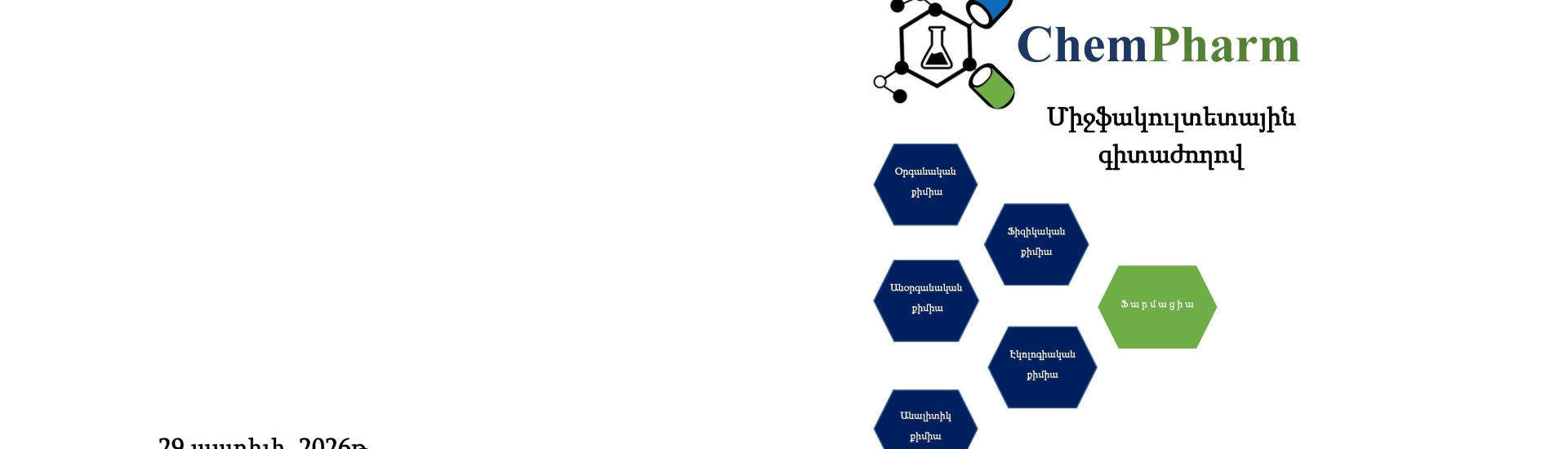 2026 թ․ ապրիլի 29-ին Երևանի պետական համալսարանի ֆարմացիայի ինստիտուտի և քիմիայի գիտահետազոտական կենտրոնների նախաձեռնությամբ կանցկացվի միջֆակուլտետային տարեկան գիտաժողով: