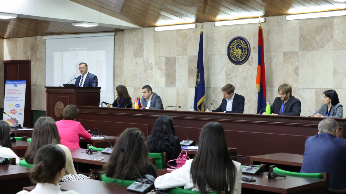 YSU Rector Hovhannes Hovhannisyan, welcoming the conference participants, stated: "This significant event underscores once again the importance of Armenian-German scientific and educational ties. YSU highly values programs that promote the spread of the German language, German culture, and the development of education in our country. The university places great importance on international cooperation, particularly in establishing partnerships with German universities and organizations. Armenian-German educational exchange programs and collaborative scientific projects enrich the knowledge and experience of our students and professors, offering new opportunities to discover new horizons in the field of science and education. I am sure this event will contribute to the further strengthening of Armenian-German cooperative ties."