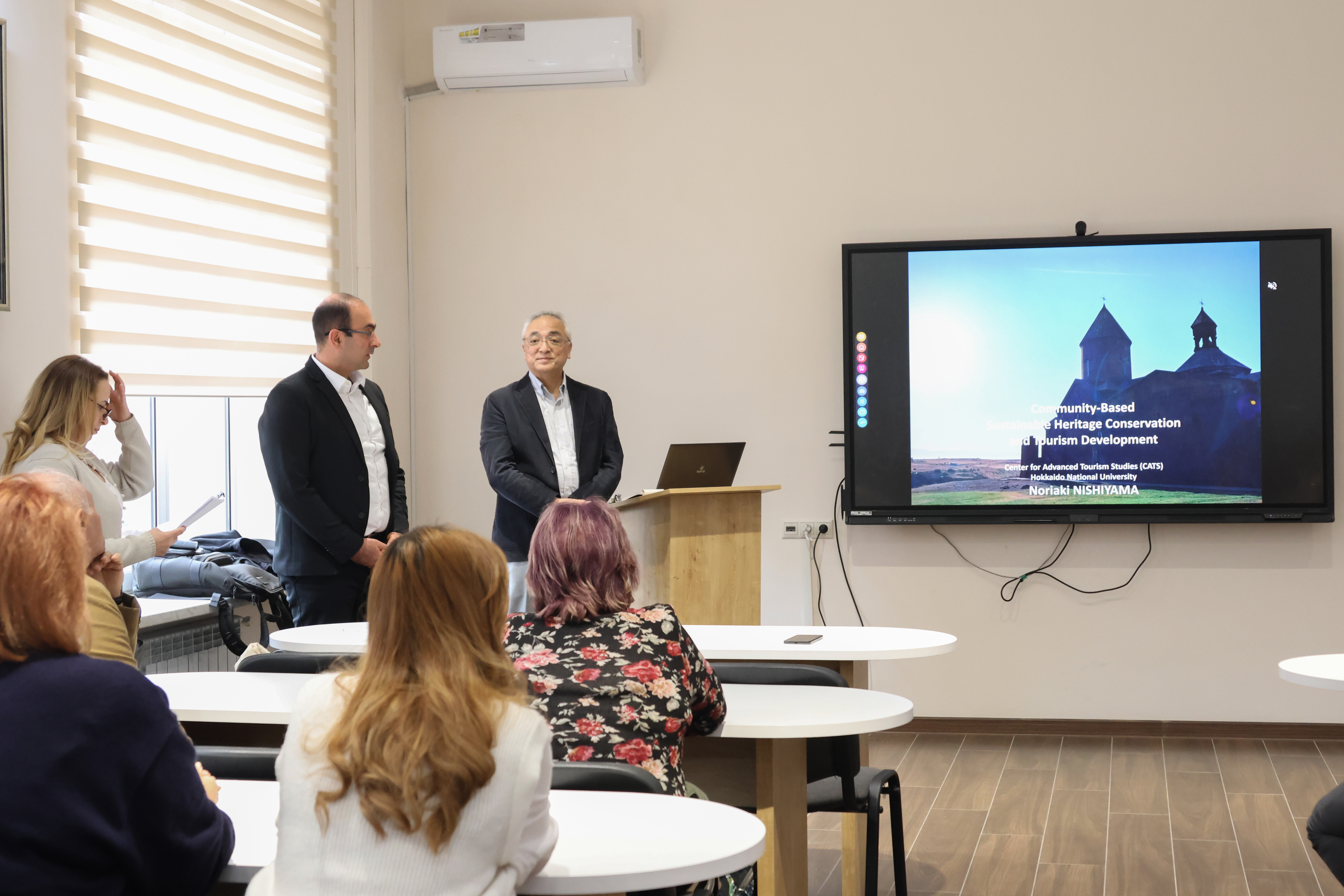 At the YSU Faculty of Geography and Geology, a lecture titled "Community-Based Sustainable Heritage Conservation and Tourism Development" was delivered by Professor Noriaki Nishiyama of the Center for Advanced Tourism Studies at Hokkaido University (Japan). The lecture was distinguished by its multifaceted and practical content, encompassing fundamental approaches to contemporary tourism development, regional governance, cultural heritage conservation, and community engagement.