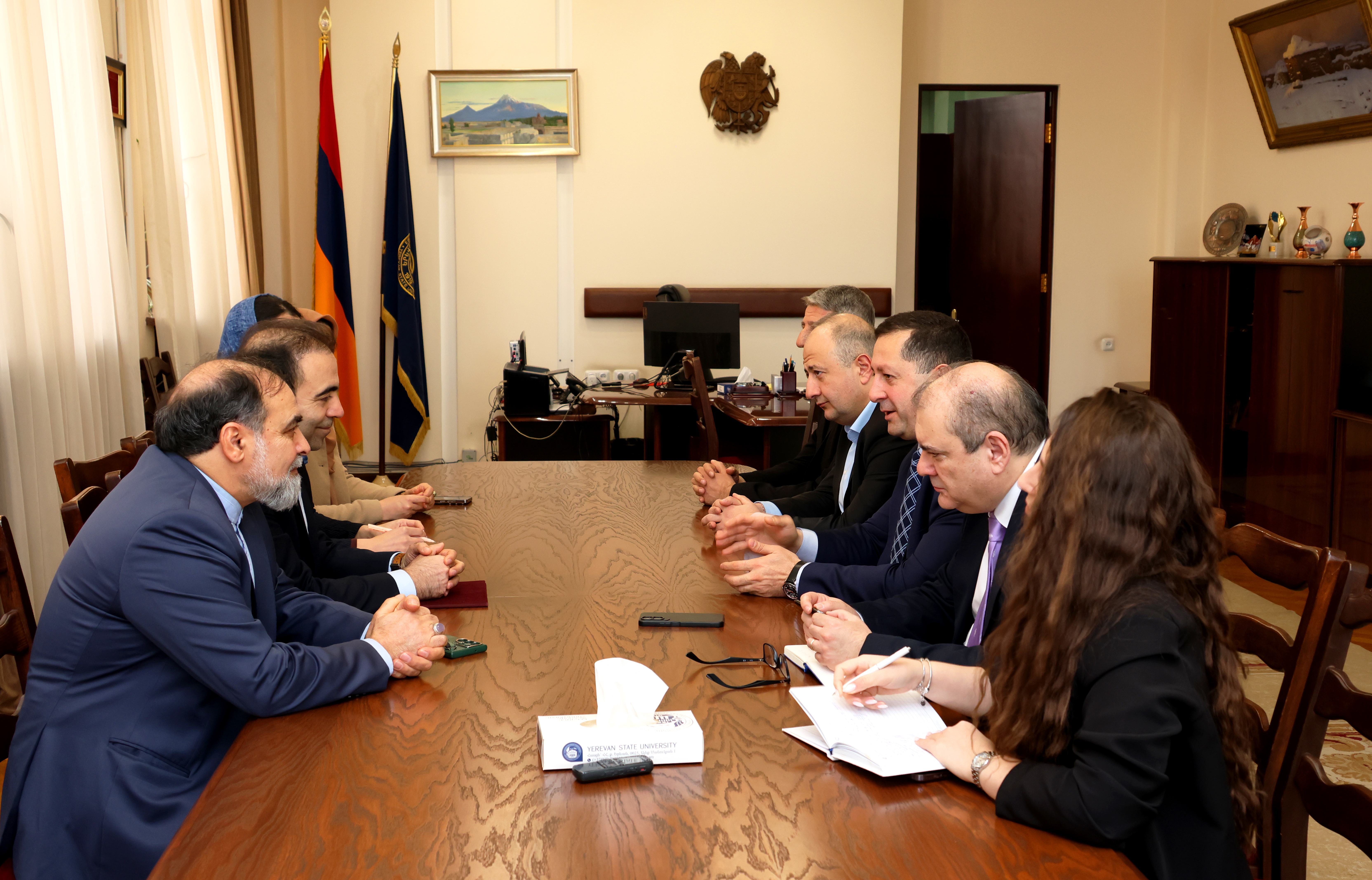ԵՊՀ ռեկտոր Հ. Հովհաննիսյանը և ՀՀ-ում ԻԻՀ դեսպան Խ. Շիրղոլամին հանդիպման շրջանակում վերահաստատեցին իրենց պատրաստակամությունը՝ նպաստելու գործող փոխադարձ հանձնառությունների կատարմանը և հայ-իրանական գիտակրթական կապերի հետևողական զարգացմանը:
